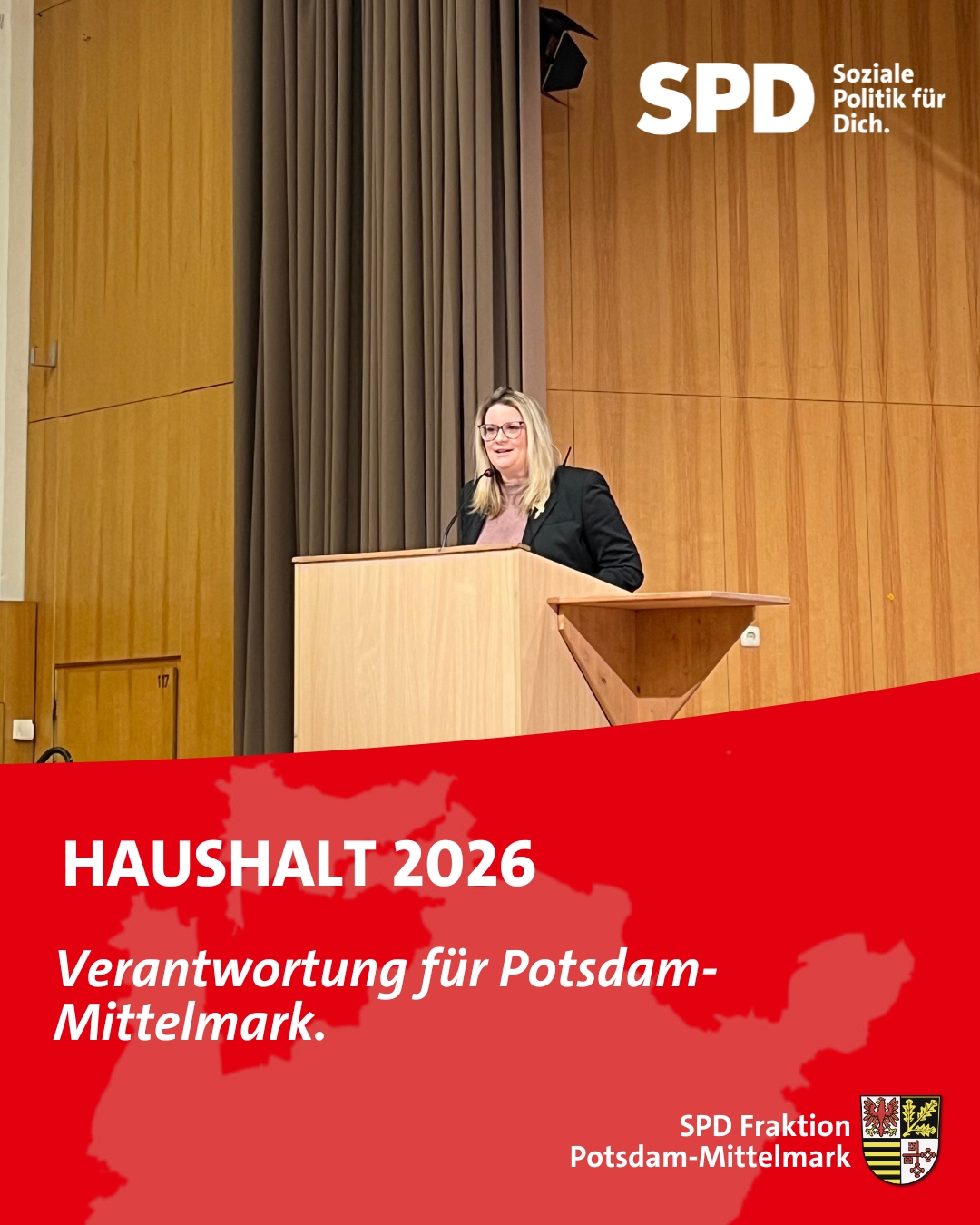 In der gestrigen Kreistagssitzung hat Anika Lorentz, stellvertretende Vorsitzende der SPD-Kreistagsfraktion Potsdam-Mittelmark und stellvertretende Vorsitzende des Jugendhilfeausschusses, in der Haushaltsdebatte zum Haushalt 2026 klare Worte gefunden. Der Haushaltsentwurf ist kein „Wohlfühlhaushalt“, aber ein ehrlicher und verantwortungsvoller Haushalt unter schwierigen Rahmenbedingungen.
